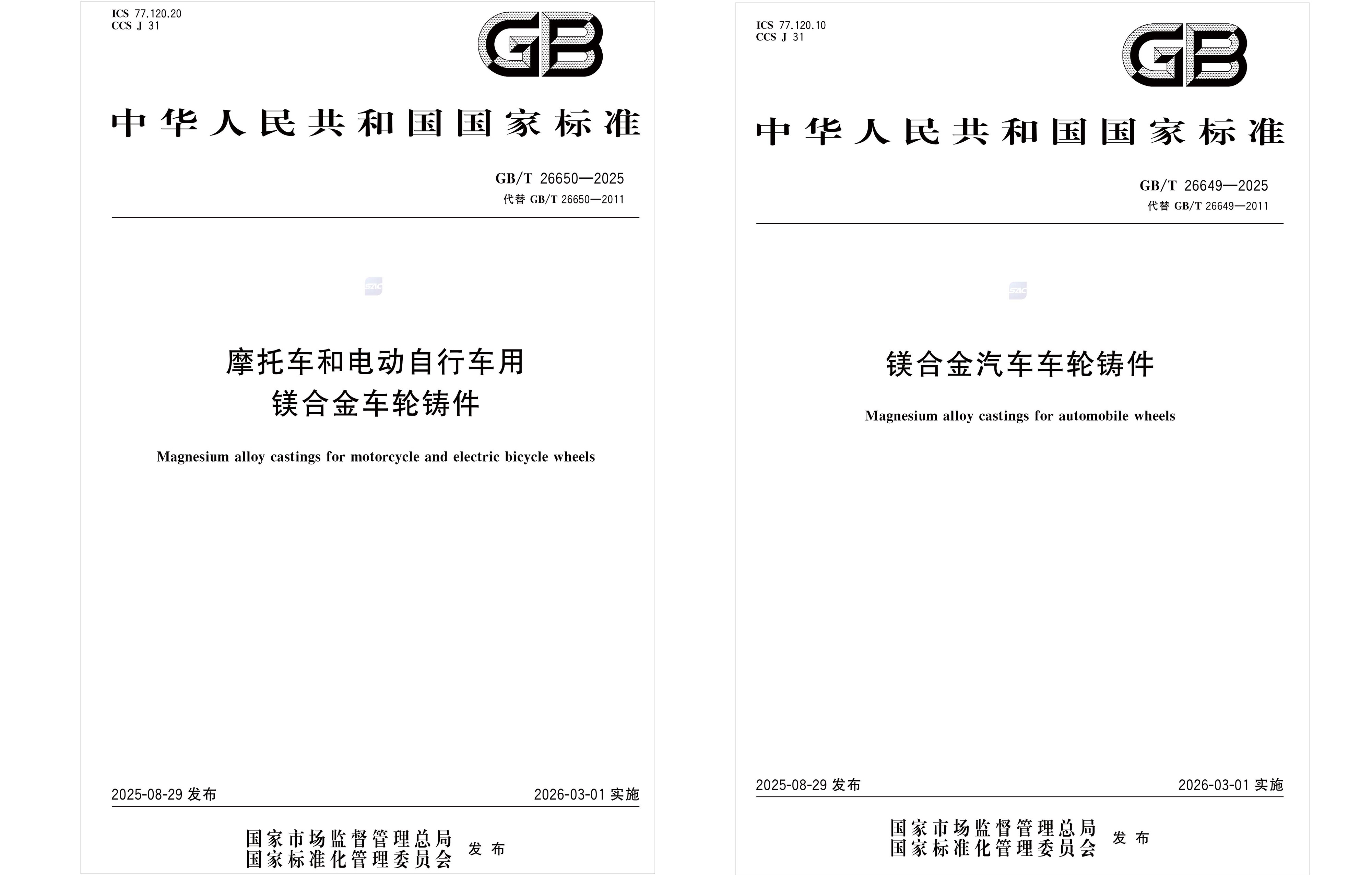近日,嘉瑞國際控股有限公司(股份代號:00822.HK)「嘉瑞集團」子公司嘉宜科技(惠州)有限公司和嘉鎂新材料科技(榆林)有限公司作為參編單位,參與了國家標準GB/T 26649-2025《鎂合金汽車車輪鑄件》和GB/T 26650-2025《摩托車和電動自行車用鎂合金車輪鑄件》的修訂工作。這兩項標準已於2025年8月29日正式發佈,並將於2026年3月1日起實施。