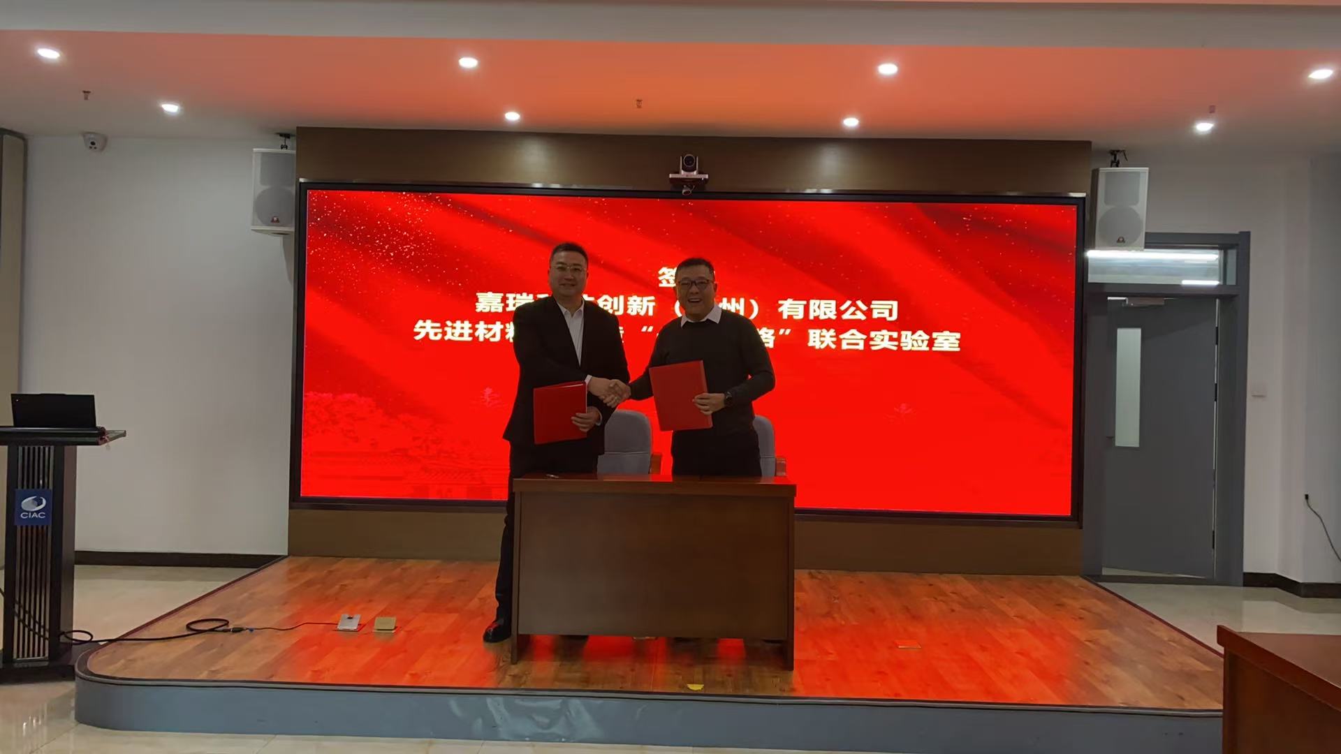 嘉瑞集團」)旗下子公司嘉瑞科技創新(惠州)有限公司與中國科學院長春應用化學研究所先進材料與製造“一帶一路”聯合實驗室(「